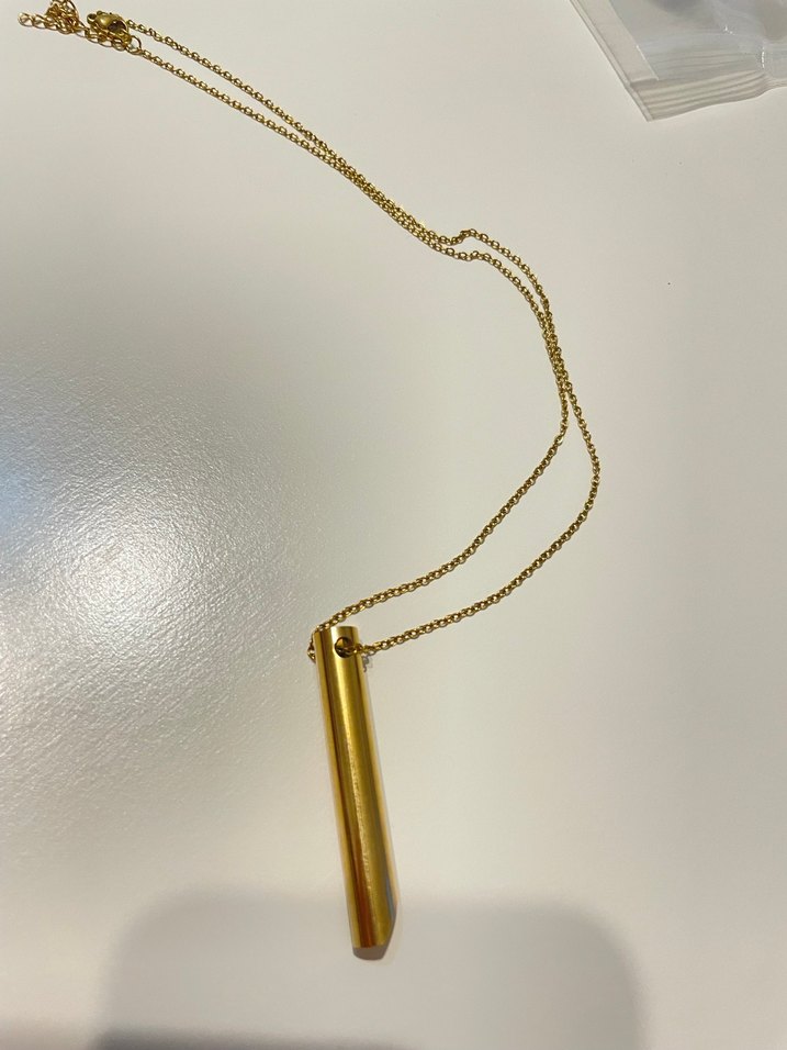 Altın renkli, zincir detaylı ve desen içermeyen sade bir kolyedir. Paslanmaz. Normal midi uzunluğunda, parlak yüzeye sahip ve günlük kullanıma uygundur. ✨