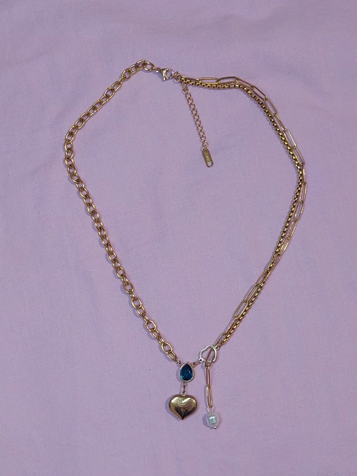 Altın renkli, zincir detaylı midi uzunlukta çelik kolye. Minimalist ve street wear tarzını yansıtır, günlük kullanıma uygundur.