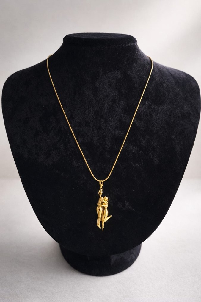 Ürünü tekli alımda tane fiyatı değişiklik göstermektedir Altın renkli zincir detaylı, baskılı kolye ucu ile cesur ve parlak görünüme sahip, romantik akşamlar için uygun midi uzunlukta Paris tarzı gotik kadın kolye.