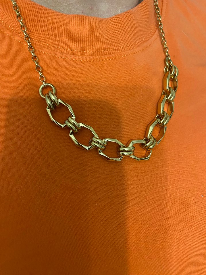 Altın renkli, zincir detaylı midi uzunlukta kadın kolye. Minimalist ve şık tasarımıyla günlük kullanım için uygundur. ✨
