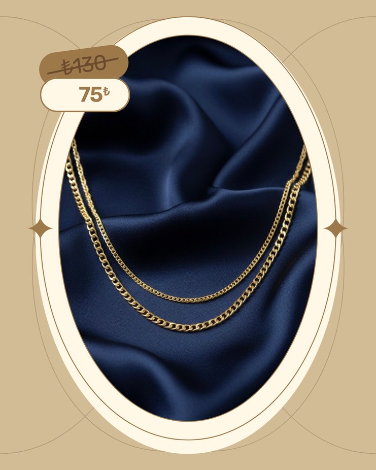 Altın renkli zincir detaylı, parlak yüzeyli ve normal midi uzunlukta kolye. Günlük kullanıma uygun modern klasik tarzda. ✨