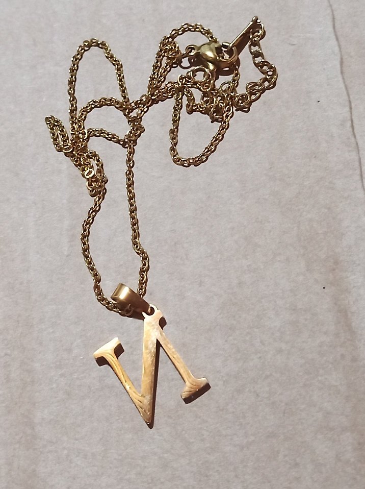 Altın renginde, zincir detaylı ve parlak yüzeyli, 'N' harfi şeklinde midi uzunlukta kolye. Günlük sokak stiline vintage dokunuş katar. ✨ N harfi çelik kolye