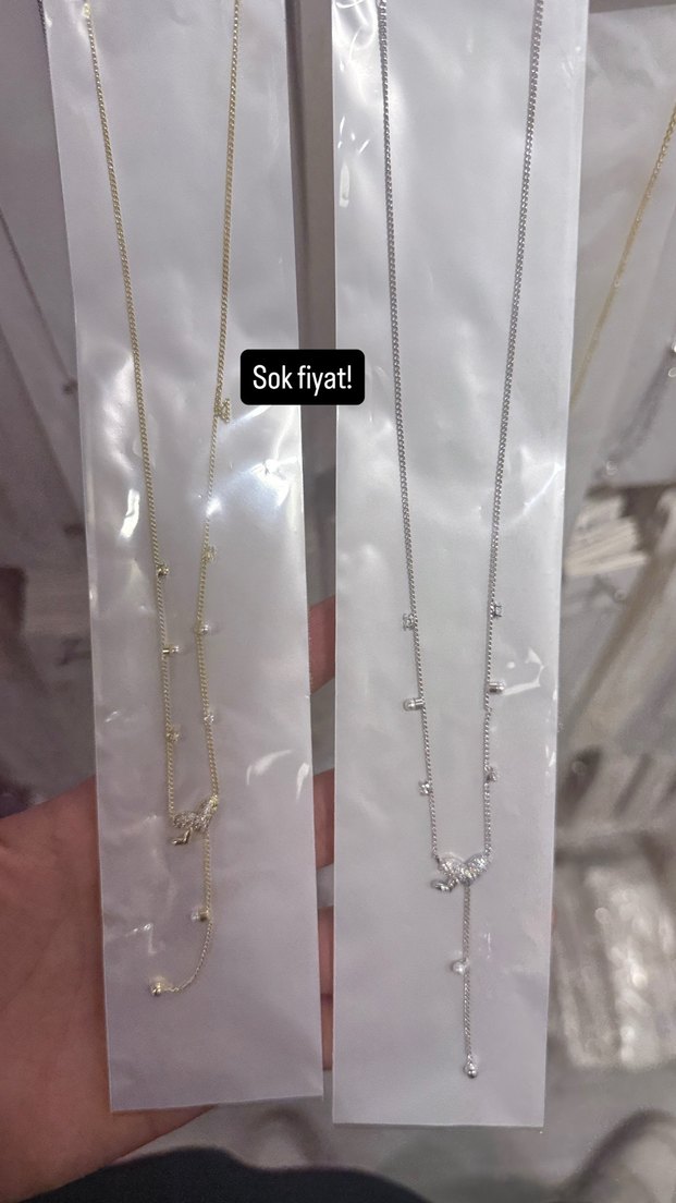 Altın Renk Zincir Detaylı Mini Kadın Kolye