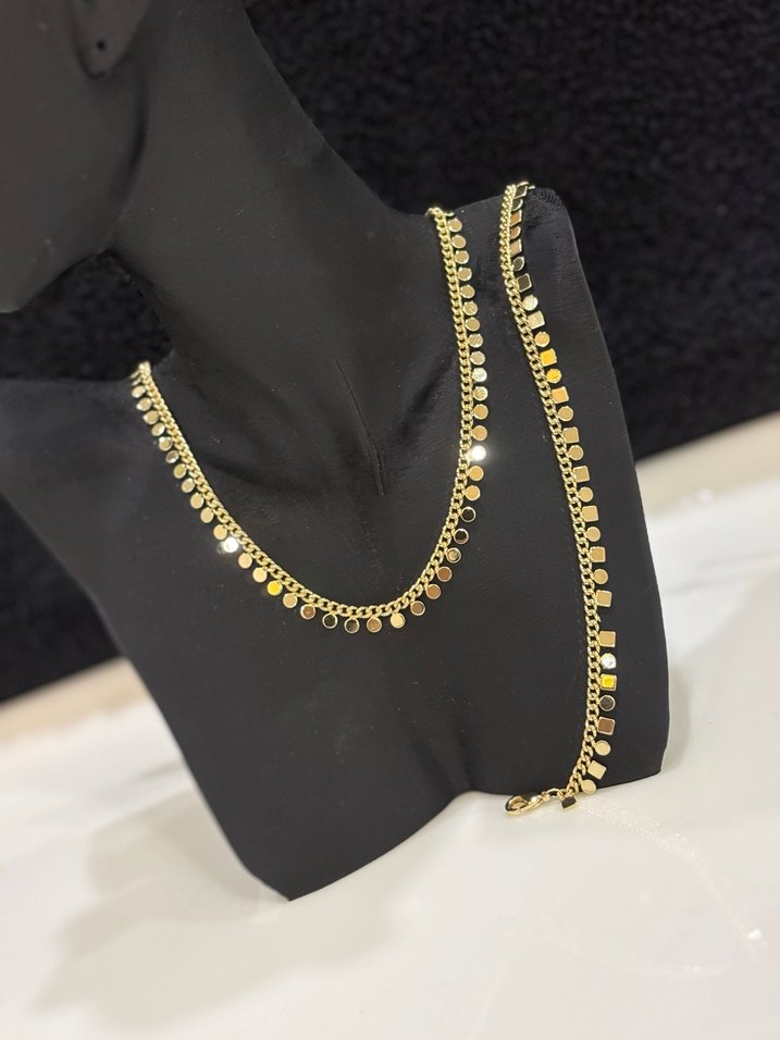 Parlak görünümlü, zincir detaylı kısa altın kolyeler. Günlük kullanım ve ışıltılı sokak tarzına uygun.