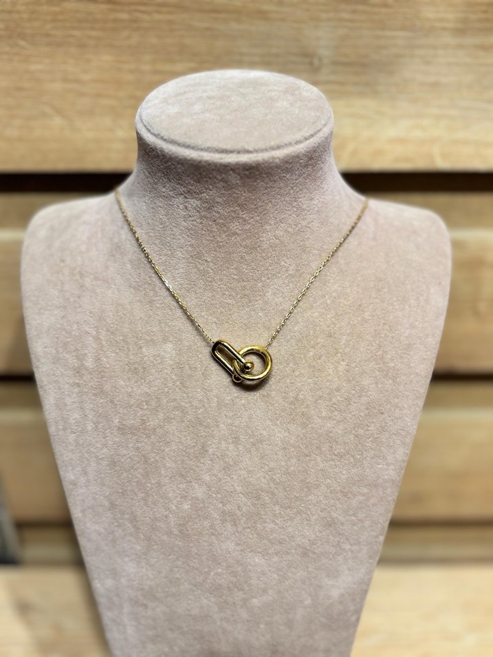 Parlak altın renkli zincir detaylı, kısa ve mini uzunlukta, çağdaş tarzda yılan desenli kolye, günlük kullanıma uygun.
