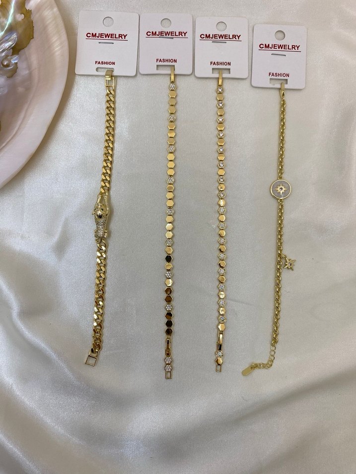 Günlük sokak stiline uygun, altın renkli zincir detaylı minimalist yılan desenli bileklikler. Marka: CMJEWELRY. ✨