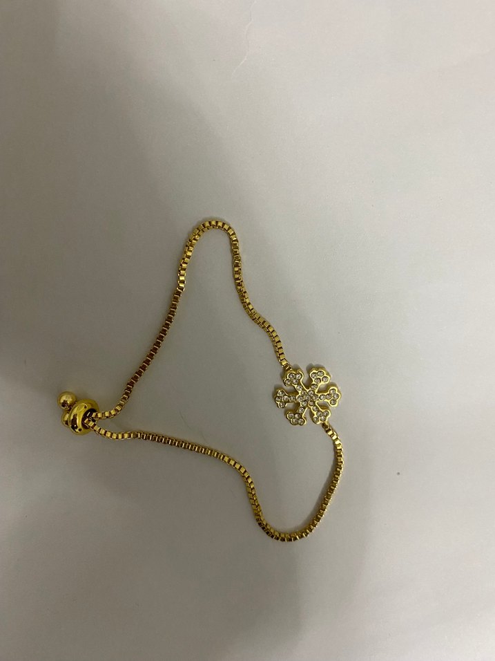 Altın renkli, zincir detaylı ve yılan deseni bulunan bu bileklik, minimalist ve mütevazı tarzı yansıtarak günlük kullanıma uygundur.