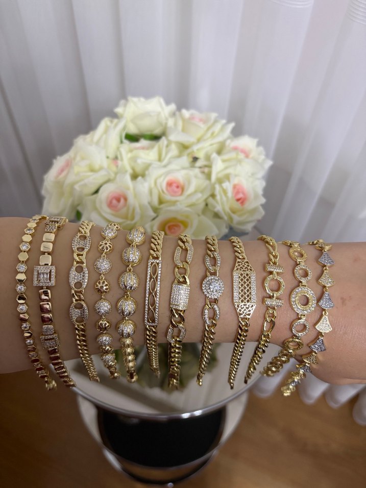 Altın renk zincir detaylı ve çiçek desenli bilezikler, modern klasik tarz ve göz alıcı şıklığı bir araya getirir, düğünler için uygun. Xuping marka