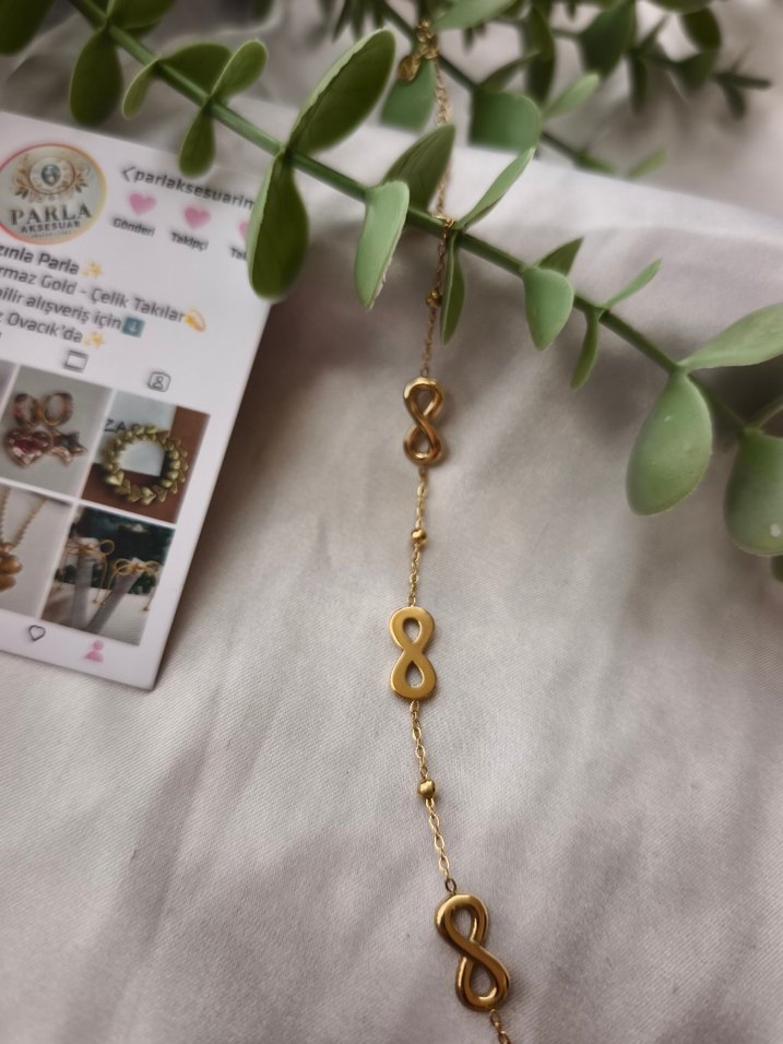 Altın renginde zincir detaylı sonsuzluk sembollü bileklik. Parlak yüzeye sahip, bohem ve minimalist tarzlara uygundur. Günlük kullanıma uygun. ✨