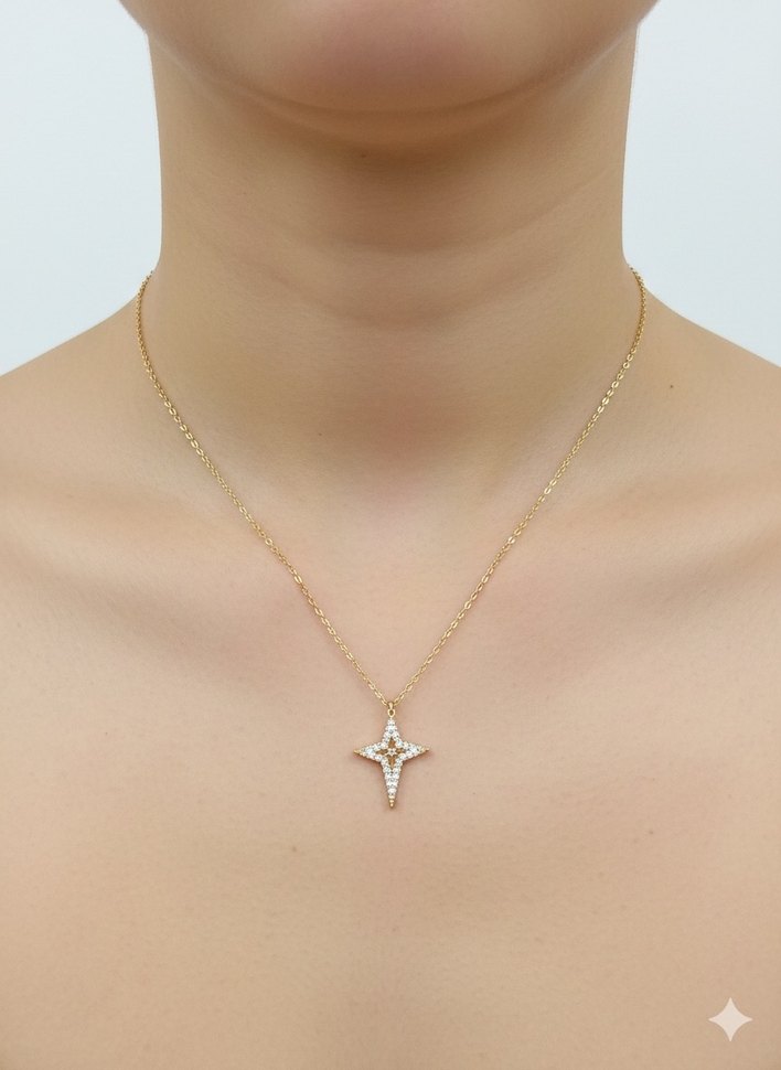 Altın Renk Zincirli kuzey yıldızı Minimalist Kolye