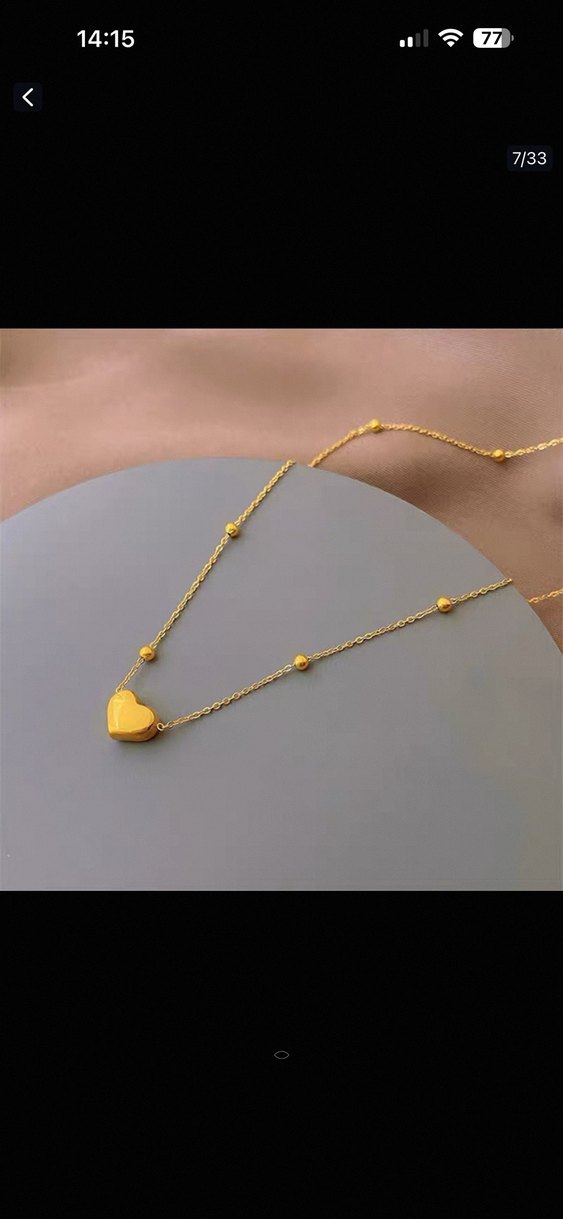 Altın renkte, zincir detaylı ve küçük kalp kolye ucu bulunan midi uzunlukta sade ve bohem tarzda günlük kullanım için uygun kolye. Titanyum çelik