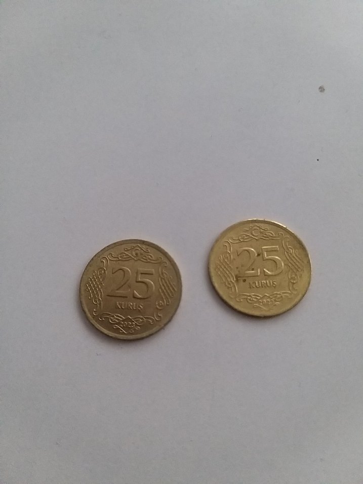 Altın renginde, 25 kuruş. Klasik ve renkli bir counterculture tasarımına sahip. ️