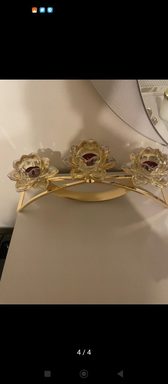 Altın Renkli 3'lü Lotus Mumluk