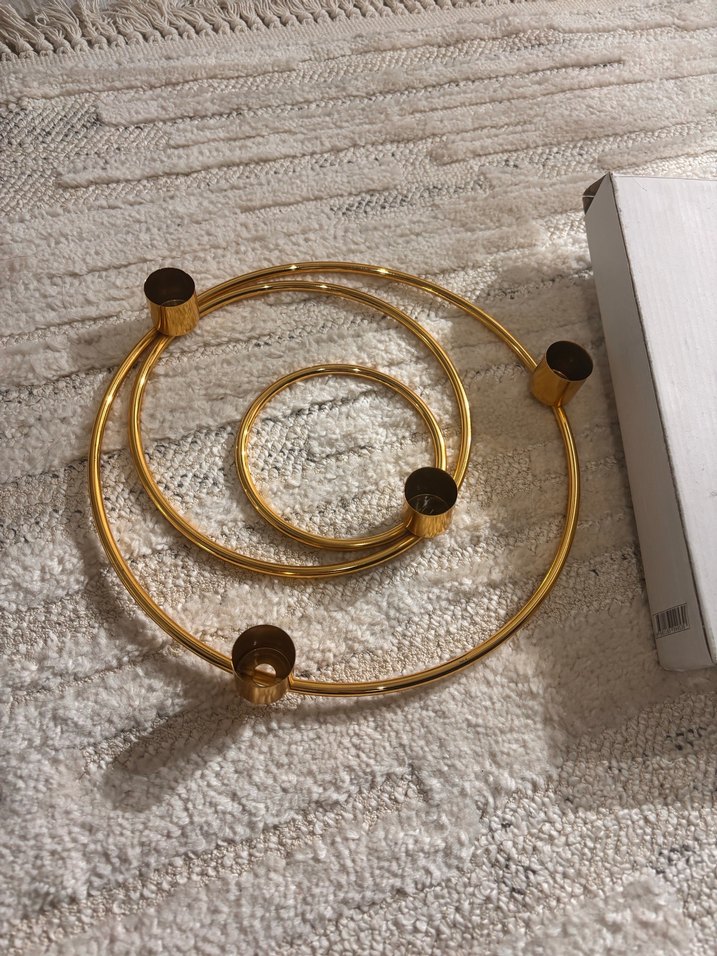 Altın renginde,ç 3 yuvarlak mumluk seti. Silindir mumlar için uygun, mekana sıcaklık katan şık tasarım. ️