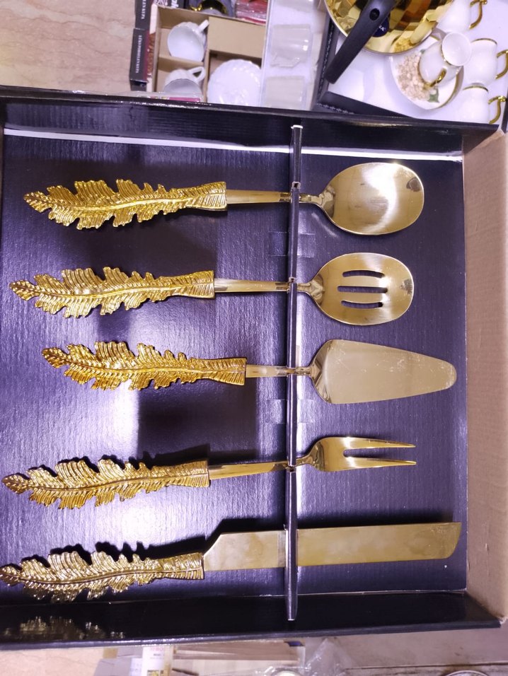 Altın Renkli 5 parça Servis Çatal Kaşık Seti