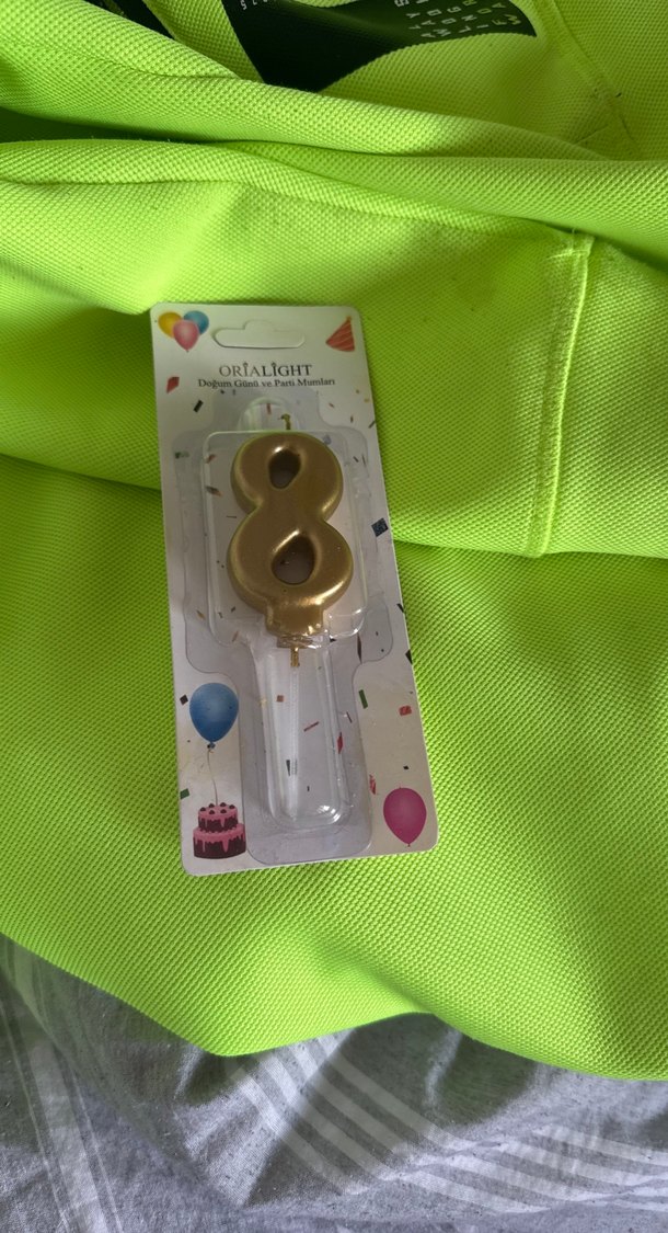 Yerleştirme için saplı altın renkli 8 sayısı mum. Parti süslemeleri için uygundur. ORIALIGHT markalı.