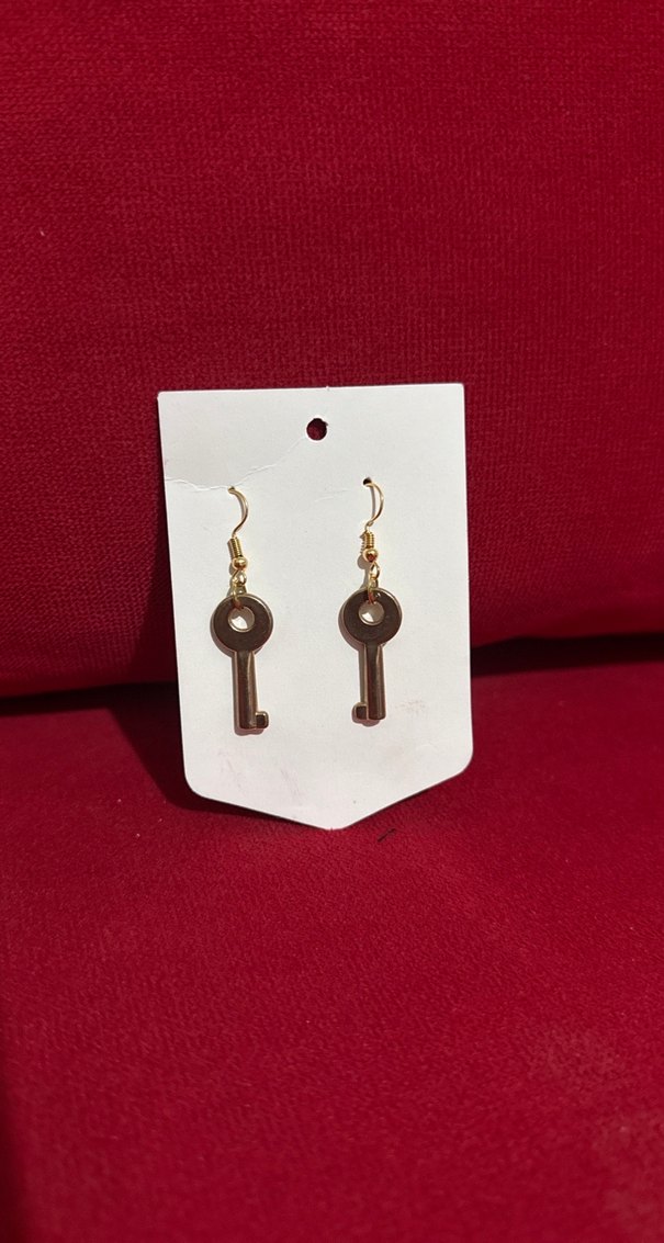 Günlük kullanıma uygun, sade ve konvansiyonel tasarımlı, anahtar figürlü altın renkli küpeler. Marka temsilidir