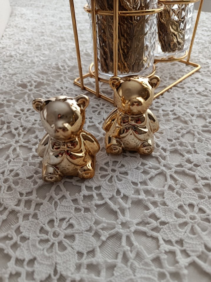 Parlak altın renkli, ayıcık figürlü biblo ev tasarımınıza çok yakışacak
