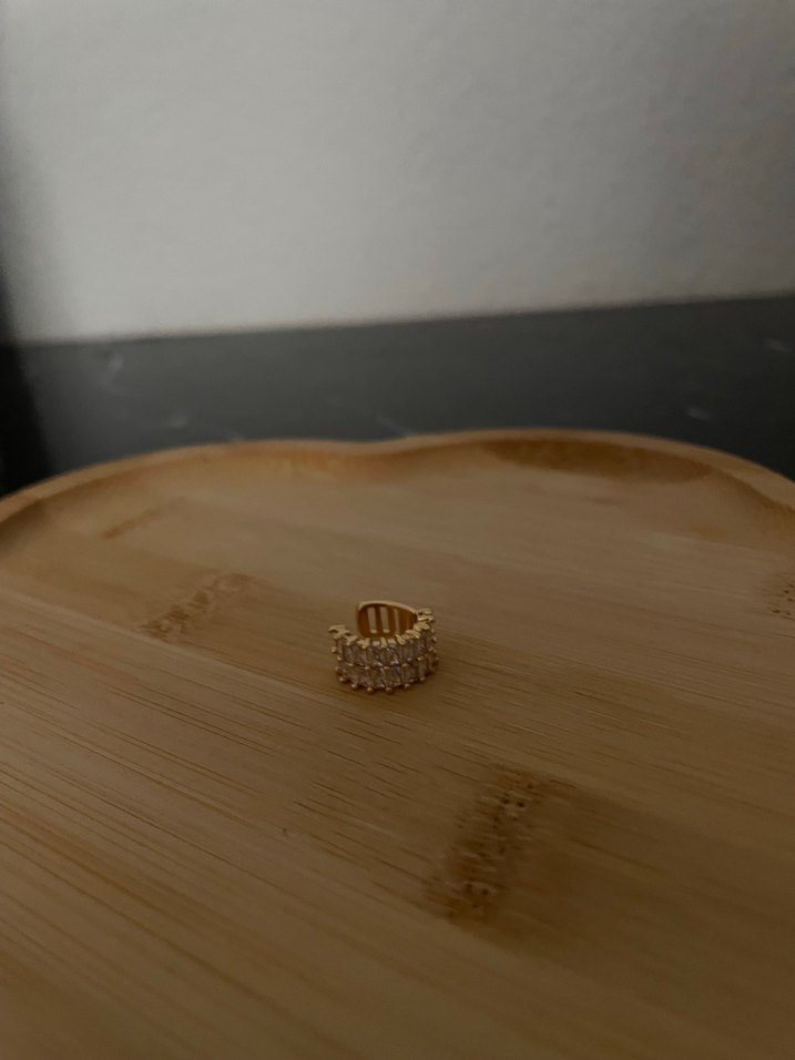 Altın renkli, payetli ve parlak detaylara sahip kadın kulak manşonu, minimalist ve bohem tarzda, romantik akşamlar için uygun. ✨