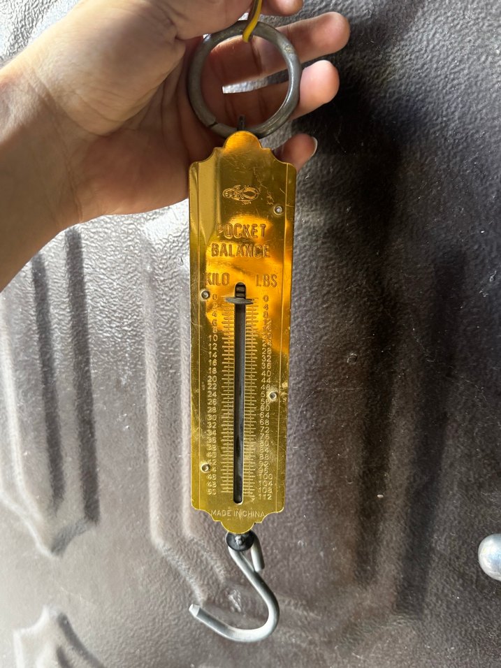 Parlak altın renkli BALANME cep terazisi, kolay tartım için kanca ve halka içerir. Kilogram ve pound ölçü birimlerini gösterir. ⚖️