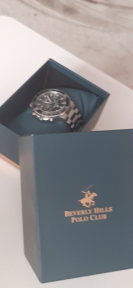 Parizyen biker tarzını yansıtan parlak altın renkli Beverly Hills Polo Club erkek saati, markalı kutusunda sunulur. ⌚