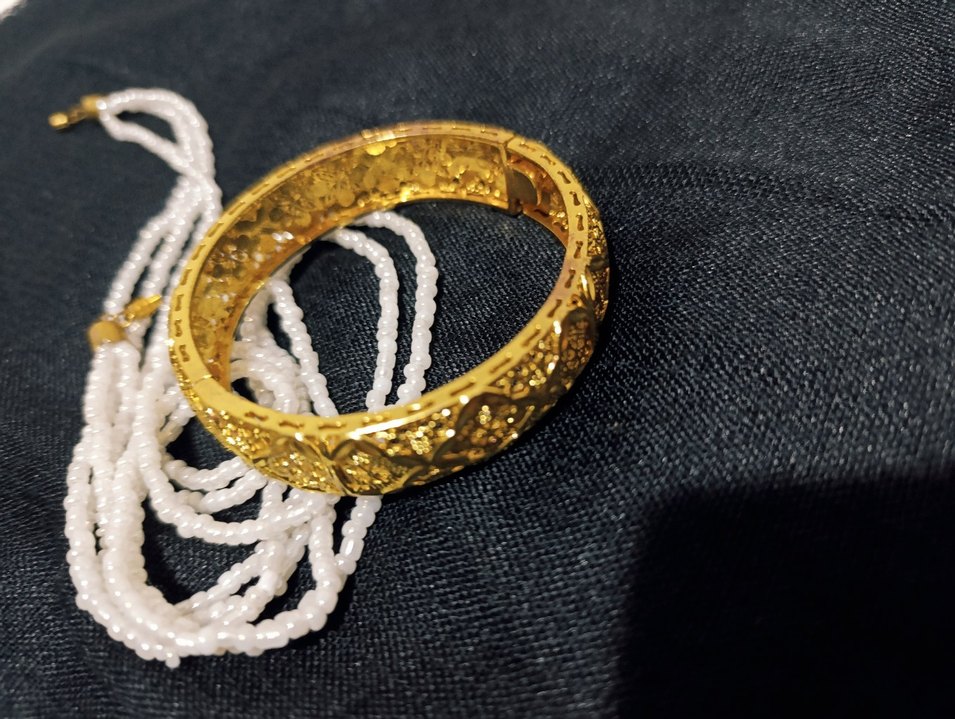 Altın Renkli bilezik ve Boncuklu Kadın kolye