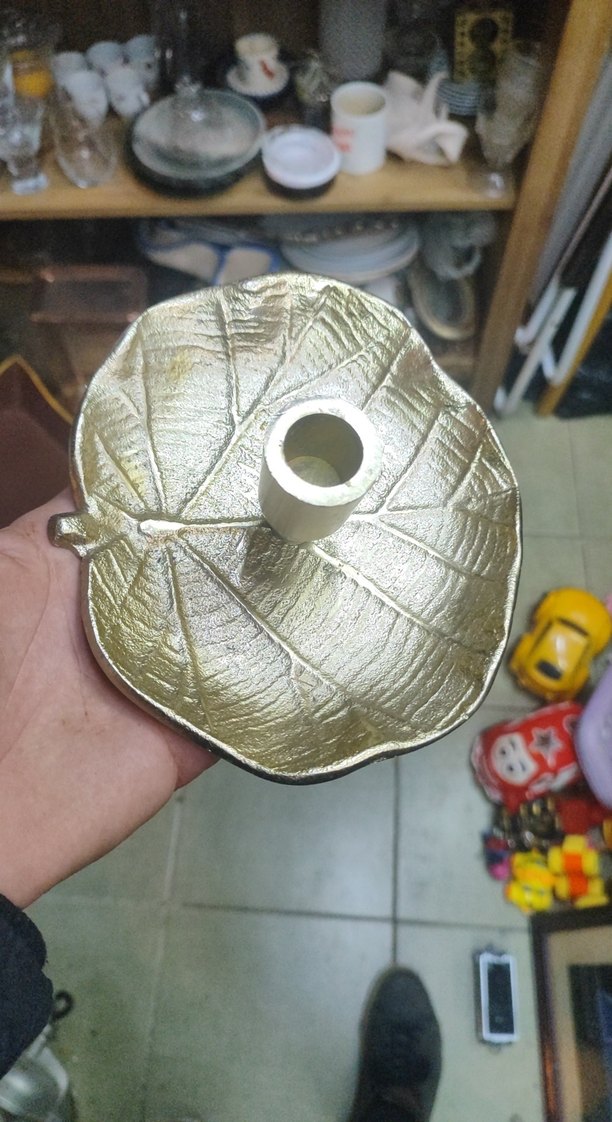 Parlak altın renkte, soyut yaprak desenli bohem tarzda mumluk, masa takımlarınıza farklı bir hava katar. ️