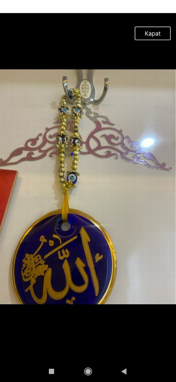 Altın Renkli Boncuklu Allah Yazılı Kadın asmalı süs