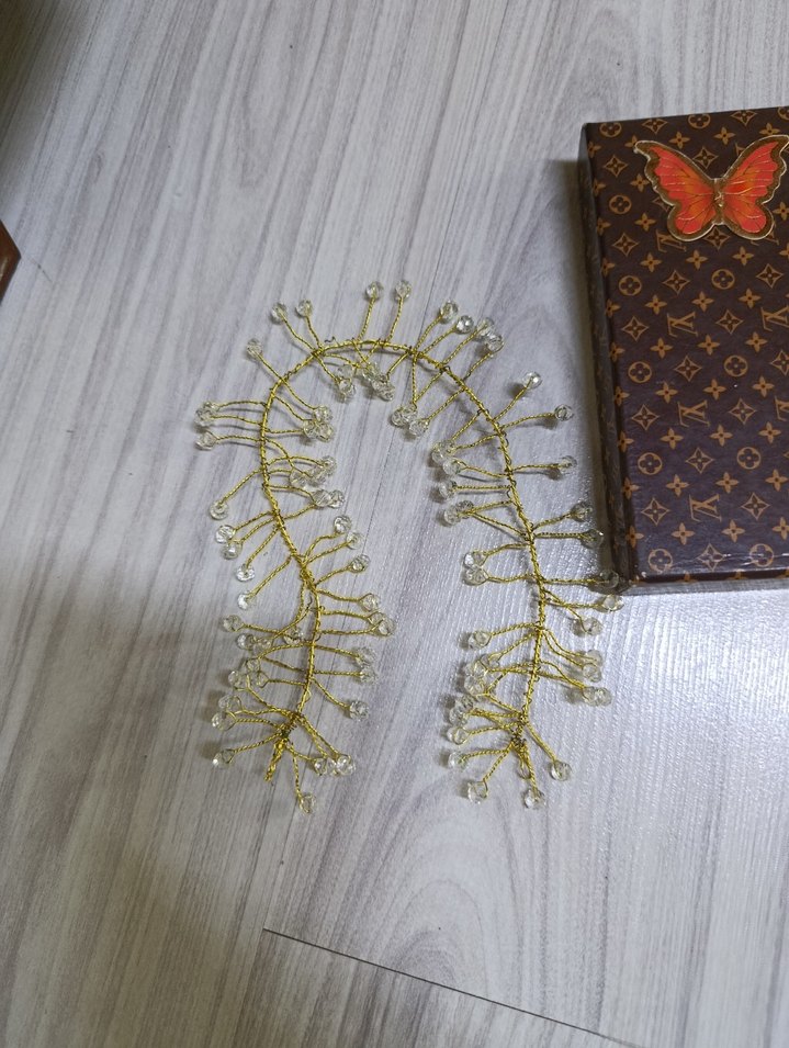 Altın renkli boncuklarla süslenmiş, bohem tarzda örme saç aksesuarı. Vintage ve retro görünüm sağlar. ✨