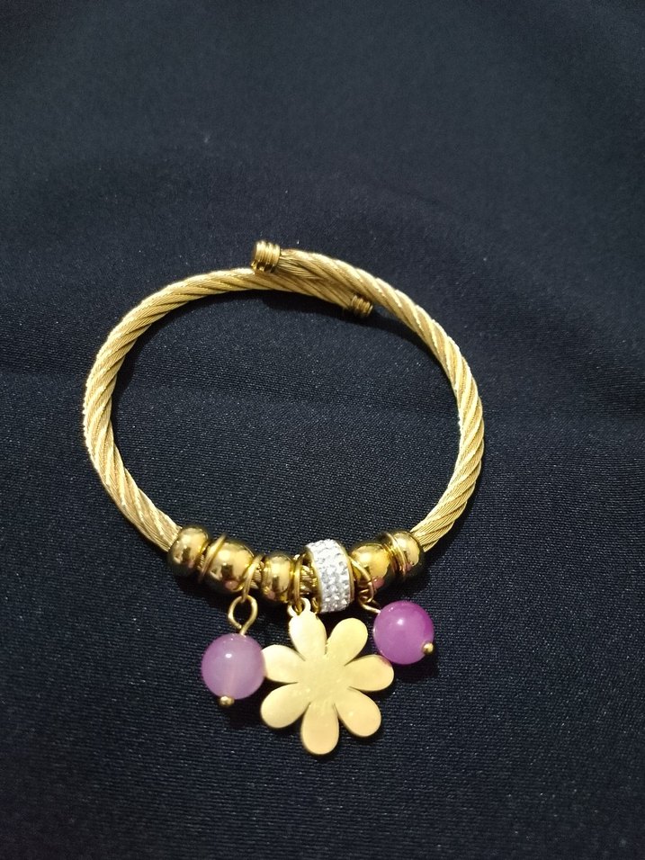 Altın Renkli Boncuklu Çiçek Desenli Bilezik