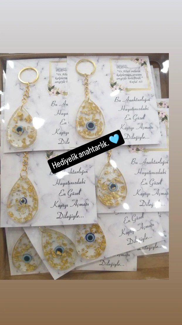 Altın renkli, boncuk detaylı bohem tarzda anahtarlık. Mütevazı Paris tarzı ve sembolik nazar boncuğu motifi içerir. Dilek mesajlı kart ile birlikte.Adet fiyatıdır.