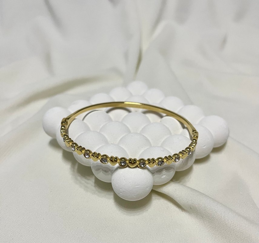 Altın renkli kadın bileklik, boncuklu detaylara sahip, modern klasik stilde ve minimalist tasarımlı, düğünler için uygun. ✨