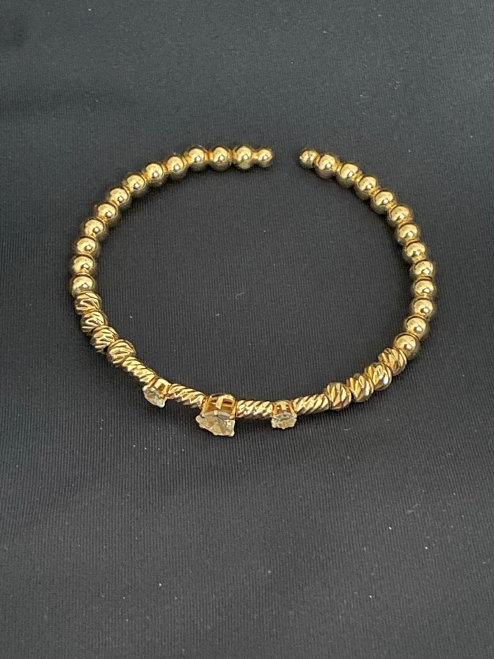 Parlak altın renkli, boncuklu tasarıma sahip, minimalist ve bohem tarzda kadın bilekliği. Romantik akşamlar için uygun. ✨