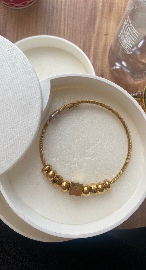 Parlak altın renkli, minimal boncuklu ve çağdaş tarzda, günlük kullanım için uygun kadın bilekliği. ✨
