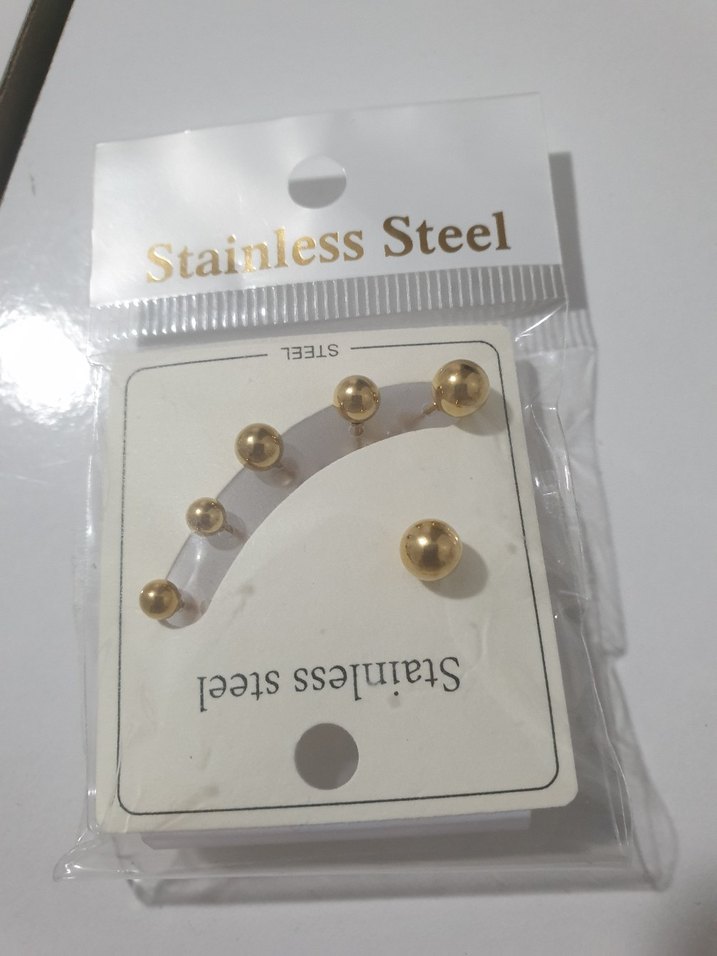 Altın renkli, boncuklu ve paslanmaz çelikten yapılmış kadın küpeleri, günlük kullanıma uygun parlak görünümlü. ✨
