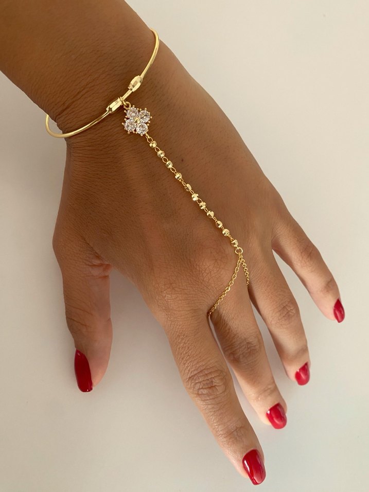 Altın renkli, çiçek desenli kadın el zinciri, bohem stil günlük kullanıma uygun