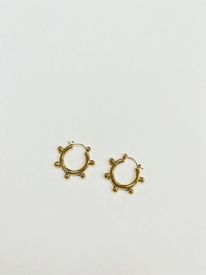 Parlak altın renkli, boncuk detaylı mini halka küpeler, günlük kullanım için minimal ve çağdaş tasarım sunar. ✨
