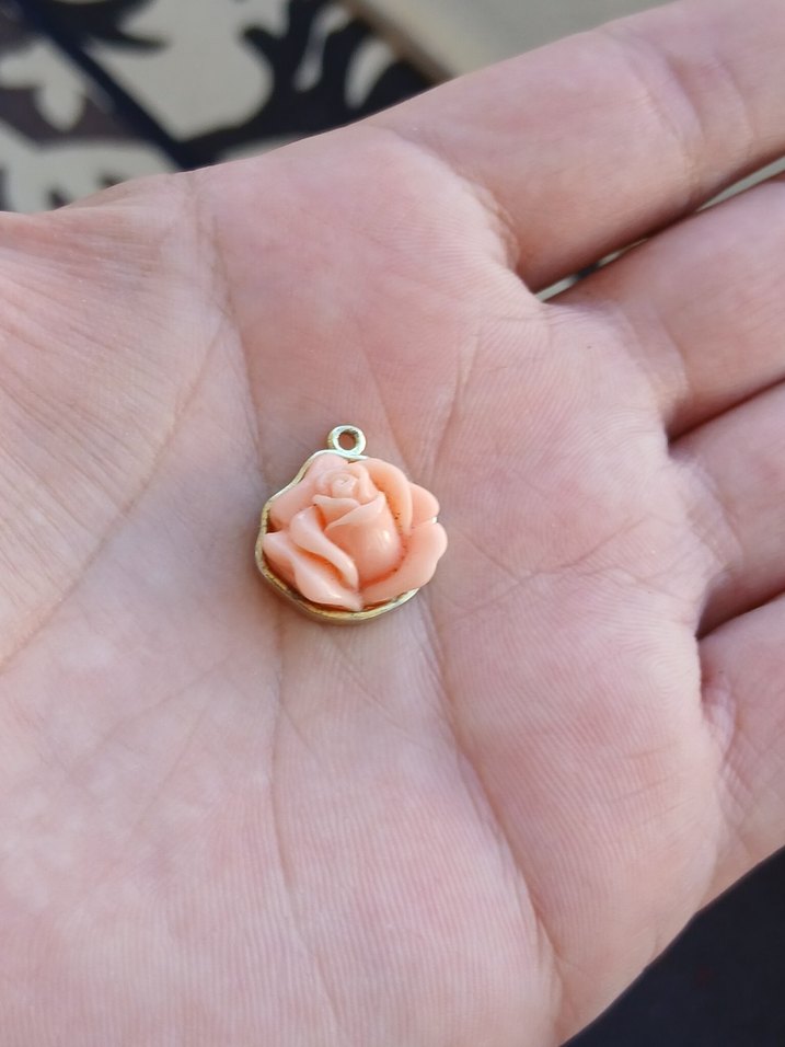 Altın renkli, pastel pembe boncuklu çiçek deseniyle vintage bohem tarzı yansıtan günlük kullanıma uygun charm.
