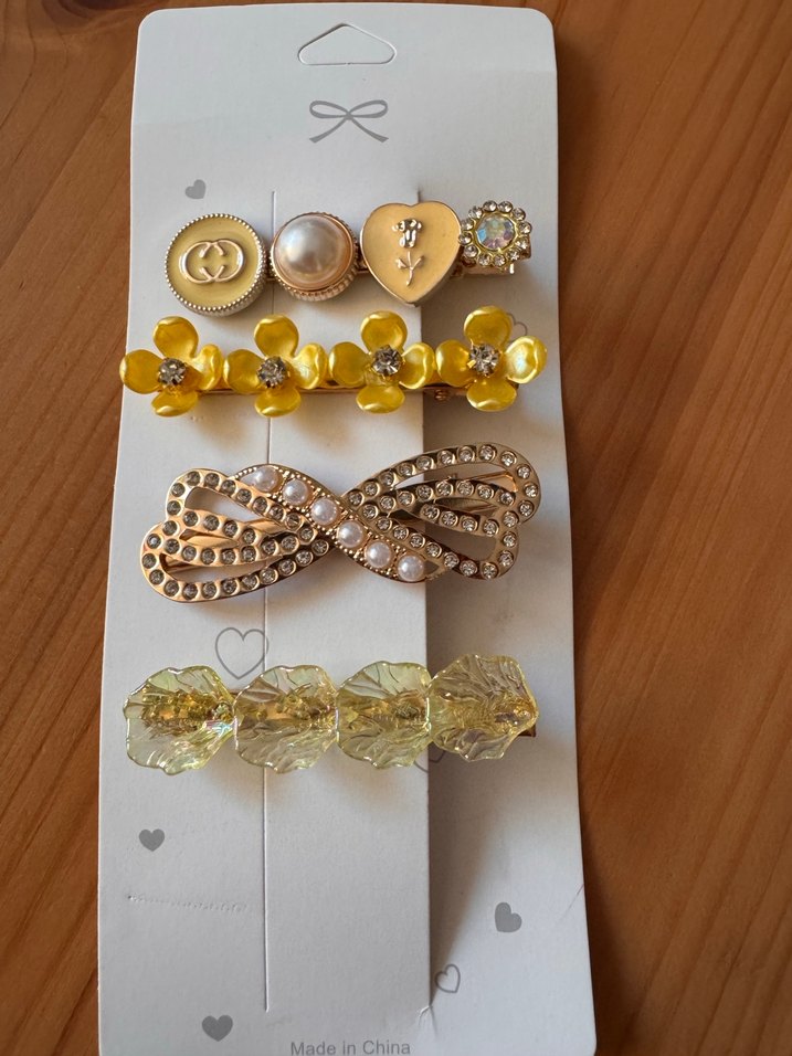 Altın renkli boncuklu ve çiçek detaylı vintage bohem tarzda kadın saç tokaları seti. Hafif parlak tonlarda plastik malzemeden yapılmıştır.