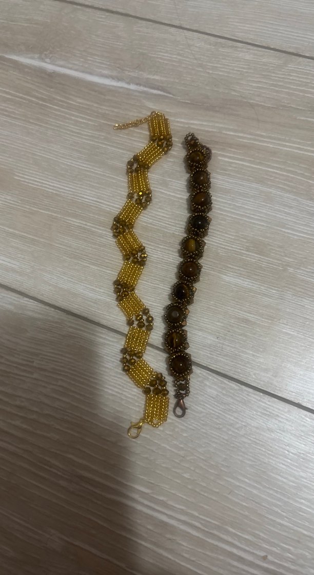 Parlak desenli, altın renkli doğal taşlardan yapılmış, vintage bohem tarzında günlük kullanıma uygun bileklikler. El yapımıdır Tane fiyatıdır