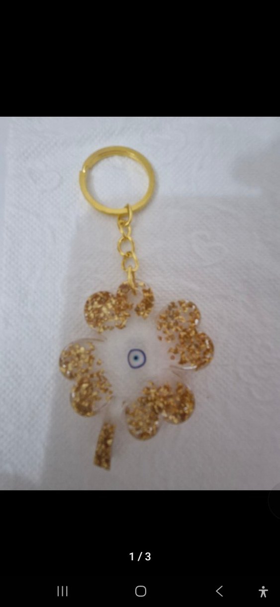 Altın Renkli Boncuklu Yonca Anahtarlık