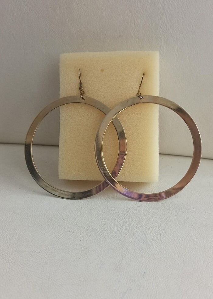Altın renginde büyük halka şeklinde rahat bir küpedir.