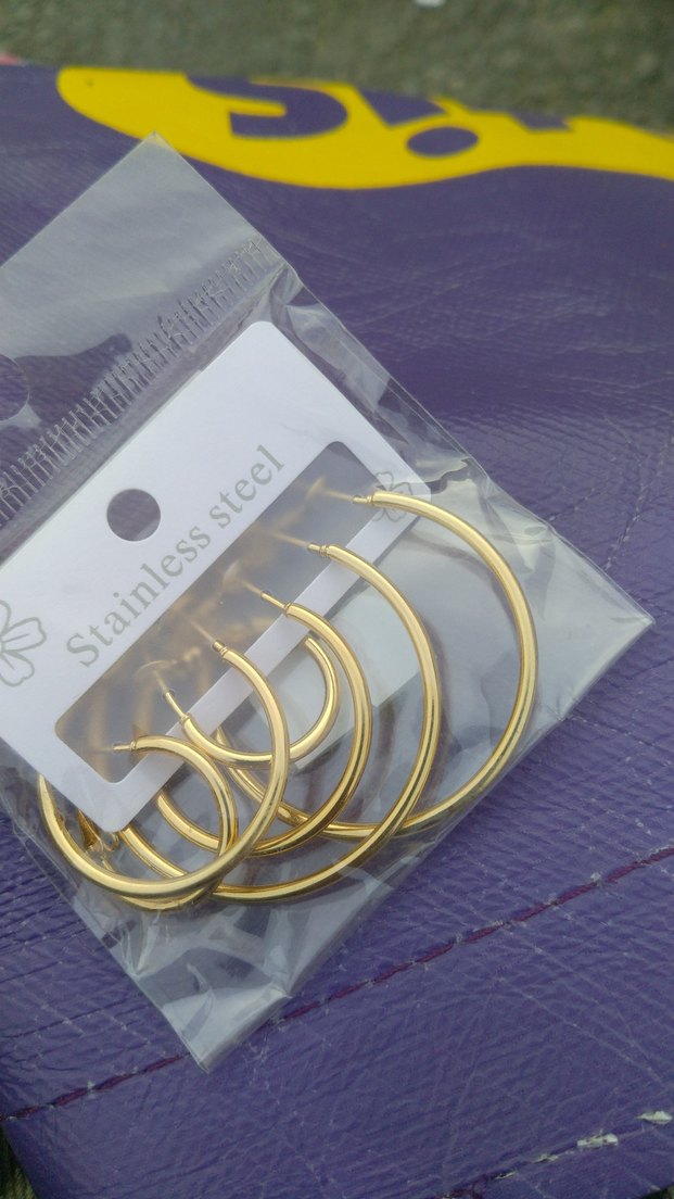 Paslanmaz çelikten yapılmış, elastik tasarımlı, parlak altın renkli mini halka küpe seti. Minimalist tarzda, günlük kullanım için uygundur. ✨