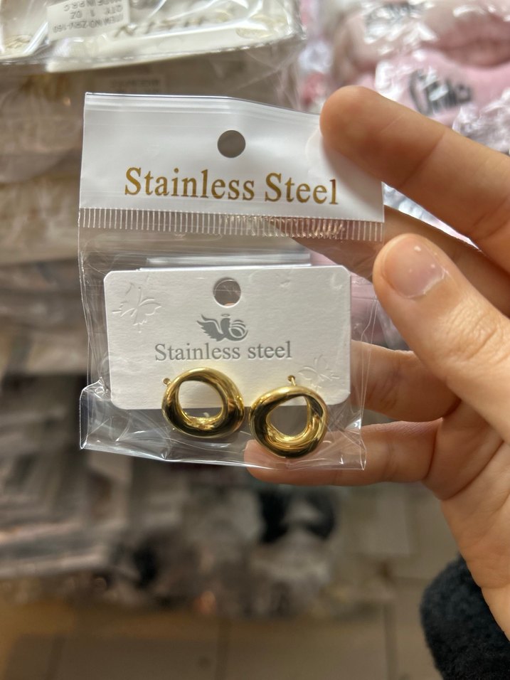 Paslanmaz çelikten, parlak altın renkli tokalı kadın küpeler, günlük sokak stili için minimal tasarımda. ✨
