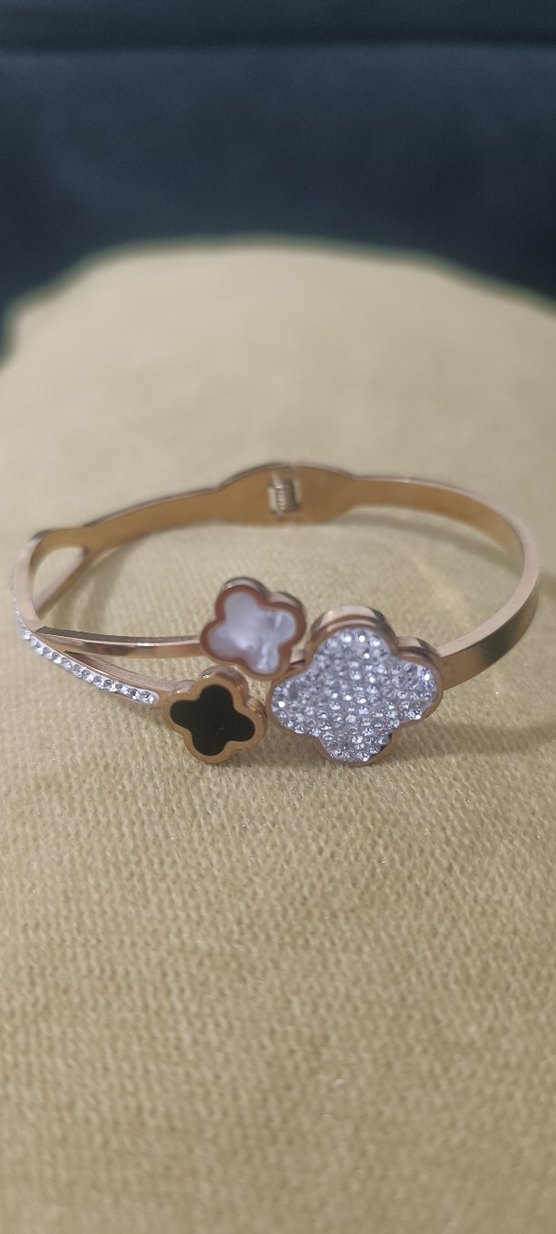 Altın Renkli Çiçek Desenli Işıltılı Bileklik