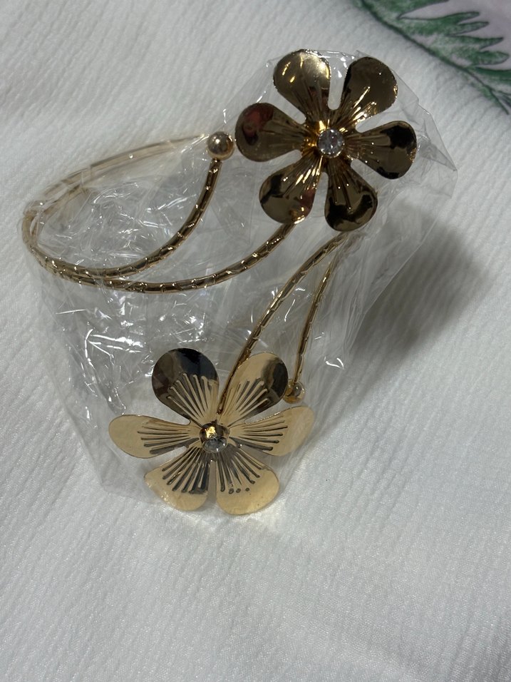 Altın renginde, çiçek desenli ve payet detaylı kadın el zinciri, düğünler ve bohem tarz için uygun. ✨