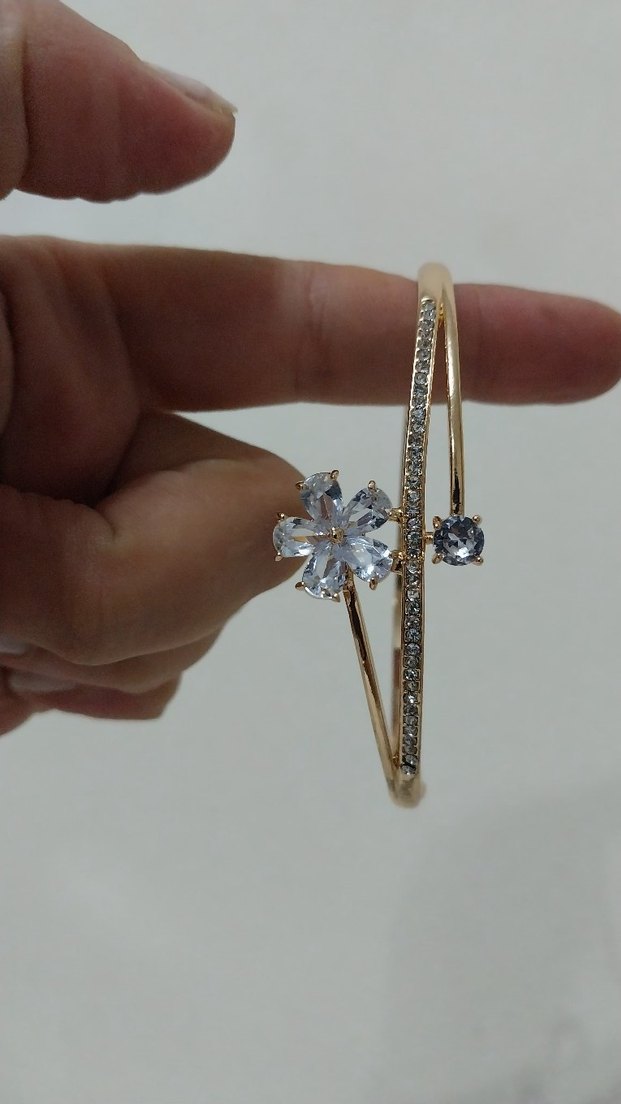 Altın renkli, çiçek desenli ve payetli detaylara sahip kadın bileklik, klasik zarafet için uygun.paslanmaz celik