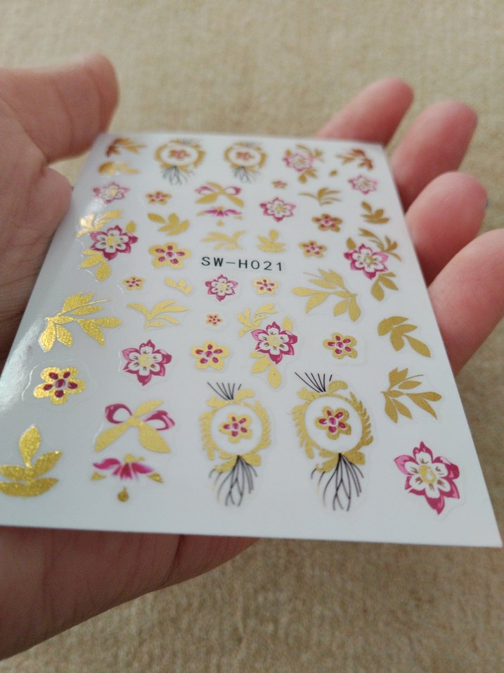 Altın Renkli Çiçek Desenli Tırnak Süslemeleri
