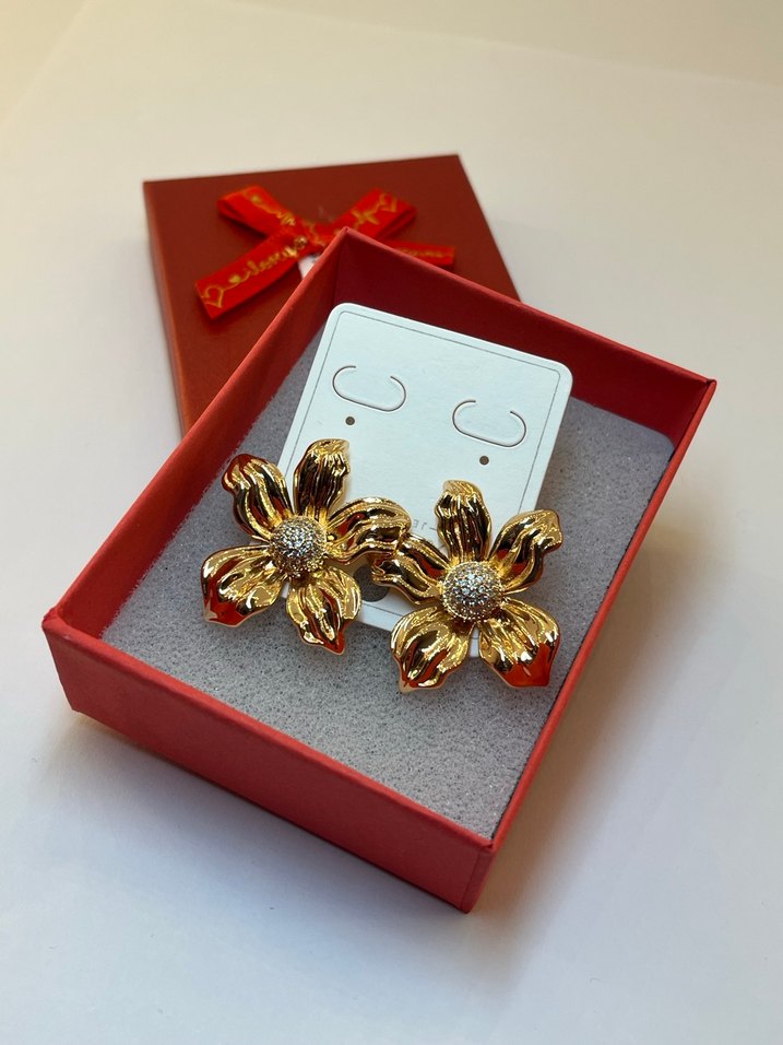 Altın Renkli Çiçek Motifli Mini Küpeler