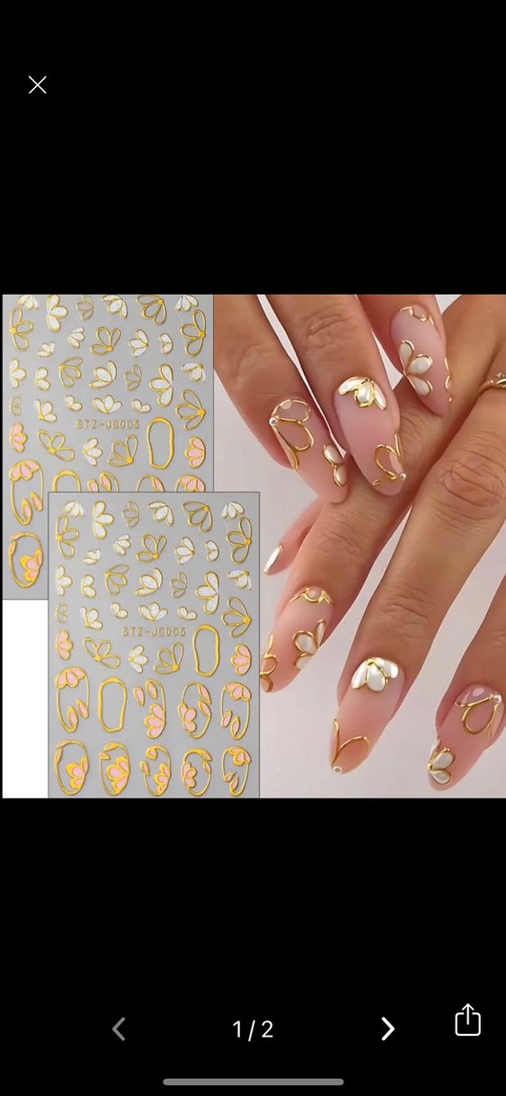 Çiçek ve soyut desenlere sahip hafif altın renkli tırnak süslemeleri, manikürlere zarif bir dokunuş katar. Başka türde tırnak stickerlarımız da mevcuttur. İlgilenen gardrop sayfamı inceleyebilir.